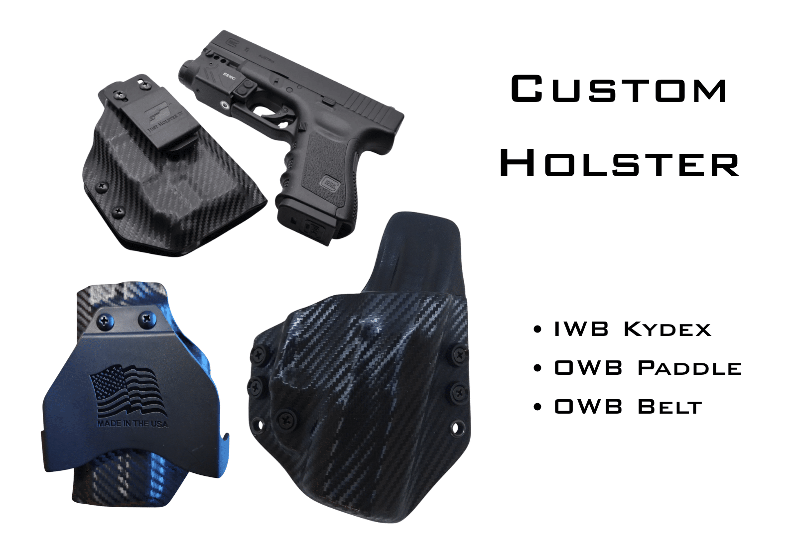 Custom holsters are hand-made to order. They will arrive in a separate package directly from JustHolsterIt but you’ll never wait more than 5 business days for your order.